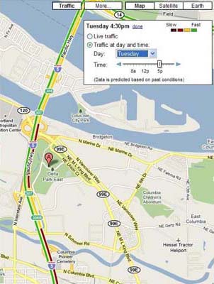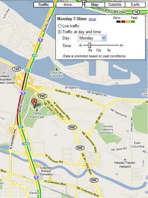 We are told that the I-5 bridge is the choke point. See for yourself where the choke points are. Go to maps.google.com and enter Delta Park 97217. Click on the button near the top of the map that says Traffic. An info box will come up that shows the day of the week and current time. Click “change” and select “Traffic at day and time”. You can select any day and see the average traffic for any time of day by sliding the Time Slider. Most of each day shows green.